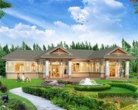 แบบบ้านชั้นเดียว P-172 บ้าน 3 ห้องนอน 4 ห้องน้ำ พื้นที่ใช้สอย 208 ตร.ม. งบก่อสร้าง 2.4 - 3.1 ล้านบาท |