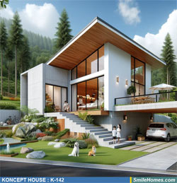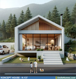 แบบบ้าน KONCEPT HOUSE เป็นแนวคิดการออกแบบบ้าน จากสไตล์ รูปแบบภายนอกของบ้าน ที่แสดงถึงเอกลักษณ์ของตัวบ้าน การเลือกใช้วัสดุ บรรยากาศโดยรวมของบ้านที่ท่านชอบ มาออกแบบรายละเอียดตามประโยชน์ใช้สอยที่ท่านต้องการ เช่น ต้องการบ้านกี่ห้องนอน มีห้องรับแขก ห้องอาหาร ห้องครัว ห้องน้ำ หรือห้องอิ่นๆ ที่ท่านต้องการ ที่จอดรถกี่คัน และเขียนเป็นแบบก่อสร้าง หรือแบบพิมพ์เขียวครบชุด ทั้งแบบสถาปัตยกรรม แบบวิศวกรรมโครงสร้าง แบบระบบไฟฟ้า และแบบระบบสุขาภิบาล พร้อมใบเซ็นรับรองของสถาปนิก, วิศวกร และรายการคำนวณให้ท่านนำไปใช้ยื่นขออนุญาติก่อสร้างจากทางราชการ , ให้ผูู้รับเหมานำไปสร้างจริง หรือนำแบบไปยื่นขอกู้แบงค์ได้ทันที