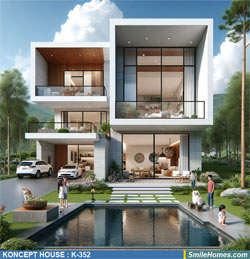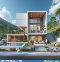 แบบบ้าน KONCEPT HOUSE เป็นแนวคิดการออกแบบบ้าน จากสไตล์ รูปแบบภายนอกของบ้าน ที่แสดงถึงเอกลักษณ์ของตัวบ้าน การเลือกใช้วัสดุ บรรยากาศโดยรวมของบ้านที่ท่านชอบ มาออกแบบรายละเอียดตามประโยชน์ใช้สอยที่ท่านต้องการ เช่น ต้องการบ้านกี่ห้องนอน มีห้องรับแขก ห้องอาหาร ห้องครัว ห้องน้ำ หรือห้องอิ่นๆ ที่ท่านต้องการ ที่จอดรถกี่คัน และเขียนเป็นแบบก่อสร้าง หรือแบบพิมพ์เขียวครบชุด ทั้งแบบสถาปัตยกรรม แบบวิศวกรรมโครงสร้าง แบบระบบไฟฟ้า และแบบระบบสุขาภิบาล พร้อมใบเซ็นรับรองของสถาปนิก, วิศวกร และรายการคำนวณให้ท่านนำไปใช้ยื่นขออนุญาติก่อสร้างจากทางราชการ , ให้ผูู้รับเหมานำไปสร้างจริง หรือนำแบบไปยื่นขอกู้แบงค์ได้ทันที