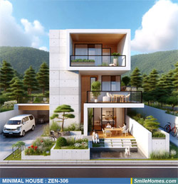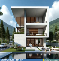 แบบบ้าน MINIMAL HOUSE DESIGN เป็นแนวคิดการออกแบบบ้าน จากสไตล์ รูปแบบภายนอกของบ้าน ที่แสดงถึงเอกลักษณ์ของตัวบ้าน การเลือกใช้วัสดุ บรรยากาศโดยรวมของบ้านที่ท่านชอบ มาออกแบบรายละเอียด ตามประโยชน์ใช้สอยที่ท่านต้องการ เช่น ต้องการบ้านกี่ห้องนอน มีห้องรับแขก ห้องอาหาร ห้องครัว ห้องน้ำ หรือห้องอิ่นๆ ที่ท่านต้องการ ที่จอดรถกี่คัน และเขียนเป็นแบบก่อสร้าง หรือแบบพิมพ์เขียวครบชุด ทั้งแบบสถาปัตยกรรม แบบวิศวกรรมโครงสร้าง แบบระบบไฟฟ้า และแบบระบบสุขาภิบาล พร้อมใบเซ็นรับรองของสถาปนิก, วิศวกร และรายการคำนวณให้ท่านนำไปใช้ยื่นขออนุญาติก่อสร้างจากทางราชการ , ให้ผูู้รับเหมานำไปสร้างจริง หรือนำแบบไปยื่นขอกู้แบงค์ได้ทันที