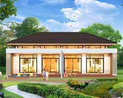 แบบบ้านแฝดชั้นเดียว D-122 จำนวน 2 หลัง มี 2 ห้องนอน 2 ห้องน้ำ พื้นที่ใช้สอยต่อหลัง 130 ตร.ม. ที่ดิน 95 ตร.ว. ขึ้นไป |