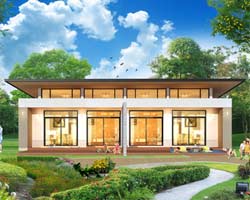 | แบบบ้านแฝดชั้นเดียว D-120 จำนวน 2 หลัง มี 2 ห้องนอน 2 ห้องน้ำ พื้นที่ใช้สอยต่อหลัง 130 ตร.ม. ที่ดิน 95 ตร.ว. ขึ้นไป |