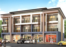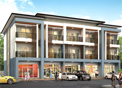 | แบบอาคารพาณิชย์ 3 ชั้น W-301 จำนวน 5 ห้อง มี 2 ห้องนอน 3 ห้องน้ำ สำหรับที่ดิน 100 ตร.ว. ขึ้นไป |
