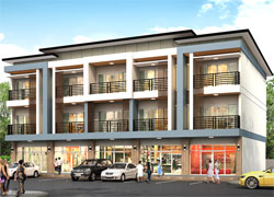 | แบบอาคารพาณิชย์ 3 ชั้นครึ่ง W-370 จำนวน 7 ห้อง มี 2 ห้องนอน 3 ห้องน้ำ สำหรับที่ดิน 150 ตร.ว. ขึ้นไป |