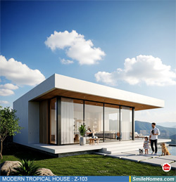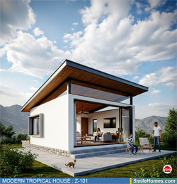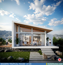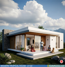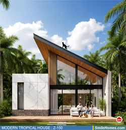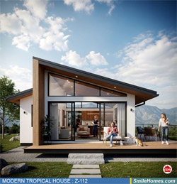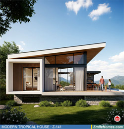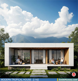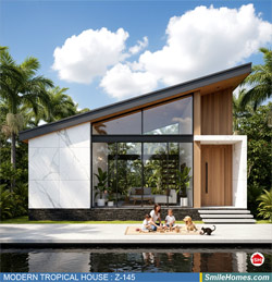 แบบบ้าน MODERN TROPICAL HOUSE เป็นแนวคิดการออกแบบบ้าน จากสไตล์ รูปแบบภายนอกของบ้าน ที่แสดงถึงเอกลักษณ์ของตัวบ้าน การเลือกใช้วัสดุ บรรยากาศโดยรวมของบ้านที่ท่านชอบ มาออกแบบรายละเอียดตามประโยชน์ใช้สอยที่ท่านต้องการ เช่น ต้องการบ้านกี่ห้องนอน มีห้องรับแขก ห้องอาหาร ห้องครัว ห้องน้ำ หรือห้องอิ่นๆ ที่ท่านต้องการ ที่จอดรถกี่คัน และเขียนเป็นแบบก่อสร้าง หรือแบบพิมพ์เขียวครบชุด ทั้งแบบสถาปัตยกรรม แบบวิศวกรรมโครงสร้าง แบบระบบไฟฟ้า และแบบระบบสุขาภิบาล พร้อมใบเซ็นรับรองของสถาปนิก, วิศวกร และรายการคำนวณให้ท่านนำไปใช้ยื่นขออนุญาติก่อสร้างจากทางราชการ , ให้ผูู้รับเหมานำไปสร้างจริง หรือนำแบบไปยื่นขอกู้แบงค์ได้ทันที