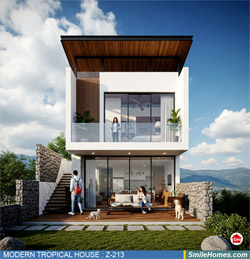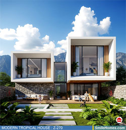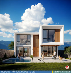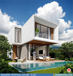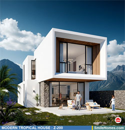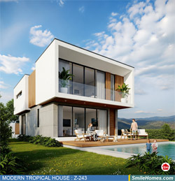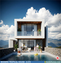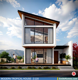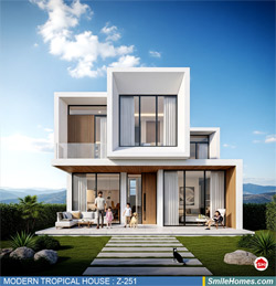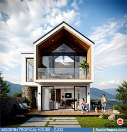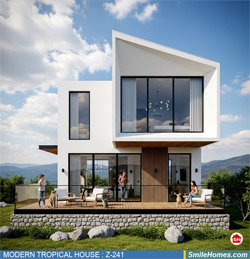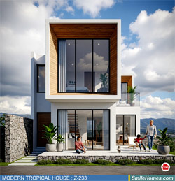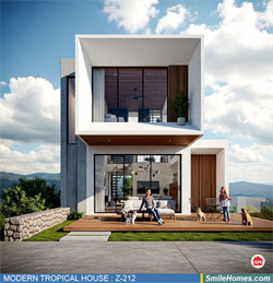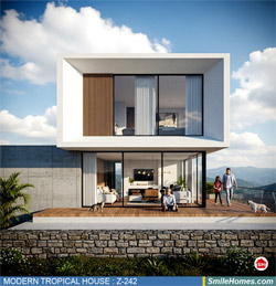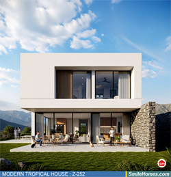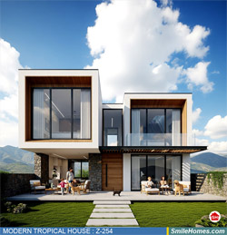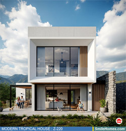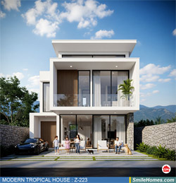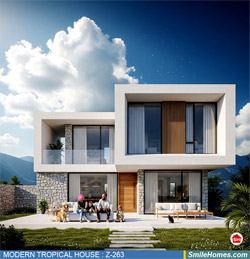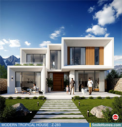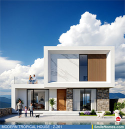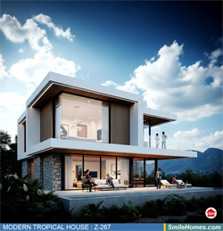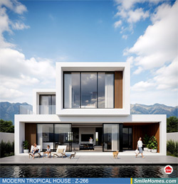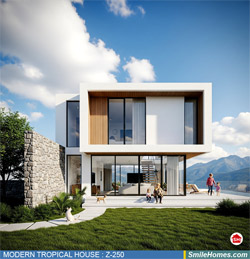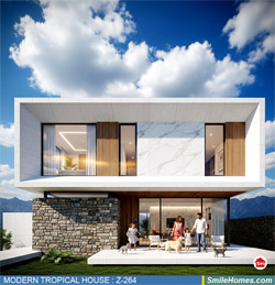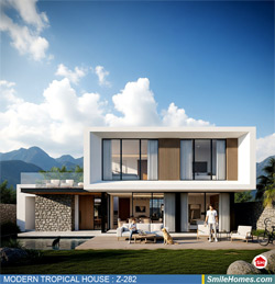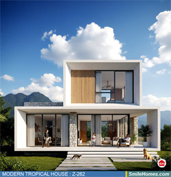 แบบบ้าน MODERN TROPICAL HOUSE เป็นแนวคิดการออกแบบบ้าน จากสไตล์ รูปแบบภายนอกของบ้าน ที่แสดงถึงเอกลักษณ์ของตัวบ้าน การเลือกใช้วัสดุ บรรยากาศโดยรวมของบ้านที่ท่านชอบ มาออกแบบรายละเอียดตามประโยชน์ใช้สอยที่ท่านต้องการ เช่น ต้องการบ้านกี่ห้องนอน มีห้องรับแขก ห้องอาหาร ห้องครัว ห้องน้ำ หรือห้องอิ่นๆ ที่ท่านต้องการ ที่จอดรถกี่คัน และเขียนเป็นแบบก่อสร้าง หรือแบบพิมพ์เขียวครบชุด ทั้งแบบสถาปัตยกรรม แบบวิศวกรรมโครงสร้าง แบบระบบไฟฟ้า และแบบระบบสุขาภิบาล พร้อมใบเซ็นรับรองของสถาปนิก, วิศวกร และรายการคำนวณให้ท่านนำไปใช้ยื่นขออนุญาติก่อสร้างจากทางราชการ , ให้ผูู้รับเหมานำไปสร้างจริง หรือนำแบบไปยื่นขอกู้แบงค์ได้ทันที